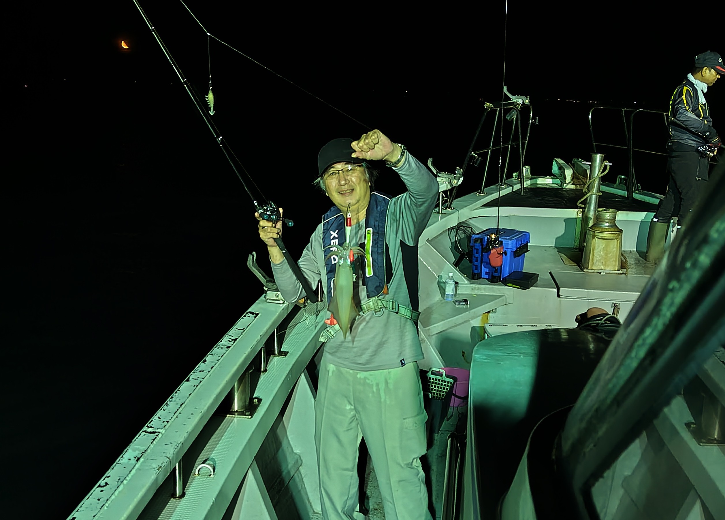 8月16日 イカメタルバチコン ケンサキイカ1人0~4杯。 大~ギガアジは入れ喰い。 上り潮の激流。八郎湖から大量に流出した大雨の水(アオコ入)の影響かイカは撃沈でした。 電気点灯前すぐに良型が1杯釣れたので期待したのですが⤵ 2025-08-18 | Posted in 船長日記 | Comments Closed < 8月16日 イカメタルバチコン 8月22日 マダラ釣り >
