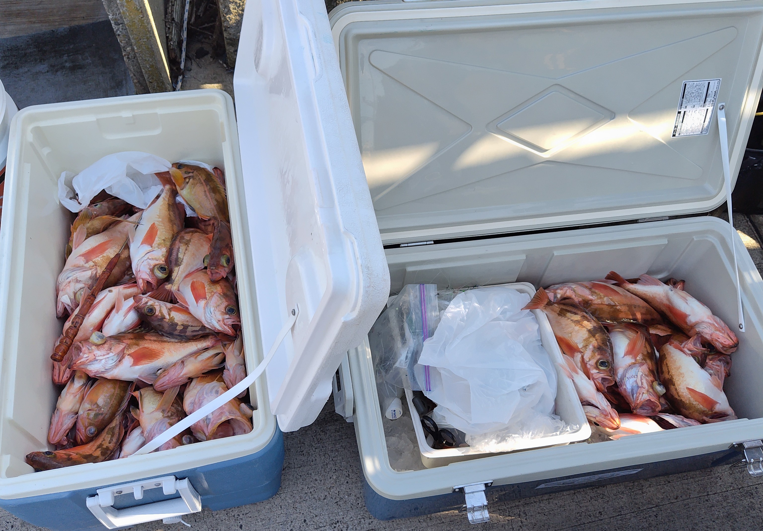 9月6日 メバル釣り 秋田海釣り名人会様のメバル釣り大会でした! 前日より回復傾向でしたが、やはり反応が少なくて…。 潮が複雑だったのかオマツリ多発警報発令! 長めの遊覧船タイムもありました(汗) そんな厳しい状況を征したのは! 19.68キロを釣り上げた桃崎さん! 二位は18.69キロの菅原さん! 三位は11.3キロの鈴木さんでした! 鈴木さんは2キロ台のアラも釣ってました! 入賞おめでとうございます! (画像の2台のクーラーが桃崎さんのクーラーです) 2025-09-07 | Posted in 船長日記 | Comments Closed < 9月6日 メバル釣り 9月6日 イカメタルバチコン >